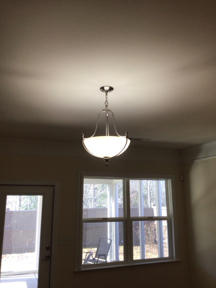 Installed customer supplied chandeliers. Customer had 2 of them. Ceilings were roughly 10ft. Used a 6 ft ladder to complete job